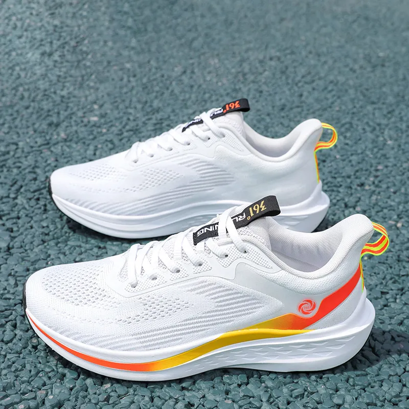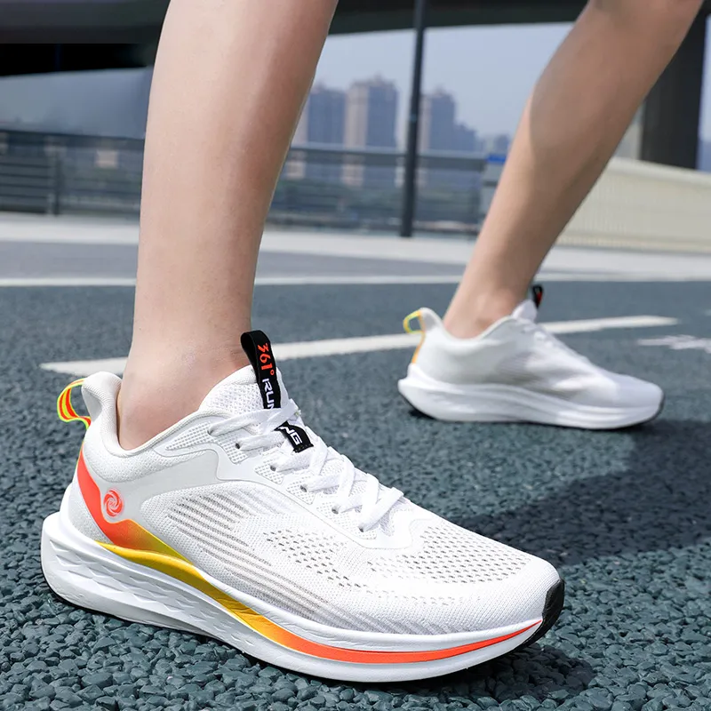 361° Амортизация Износостойкий Низкий Топ Спринт Беговые кроссовки Мужские Белый Оранжевый