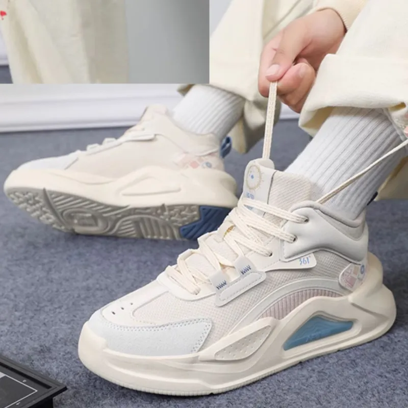 361° Jincheng Slip-resistant Abrasion-resistant High Top Skateboard Shoes Women's Beige