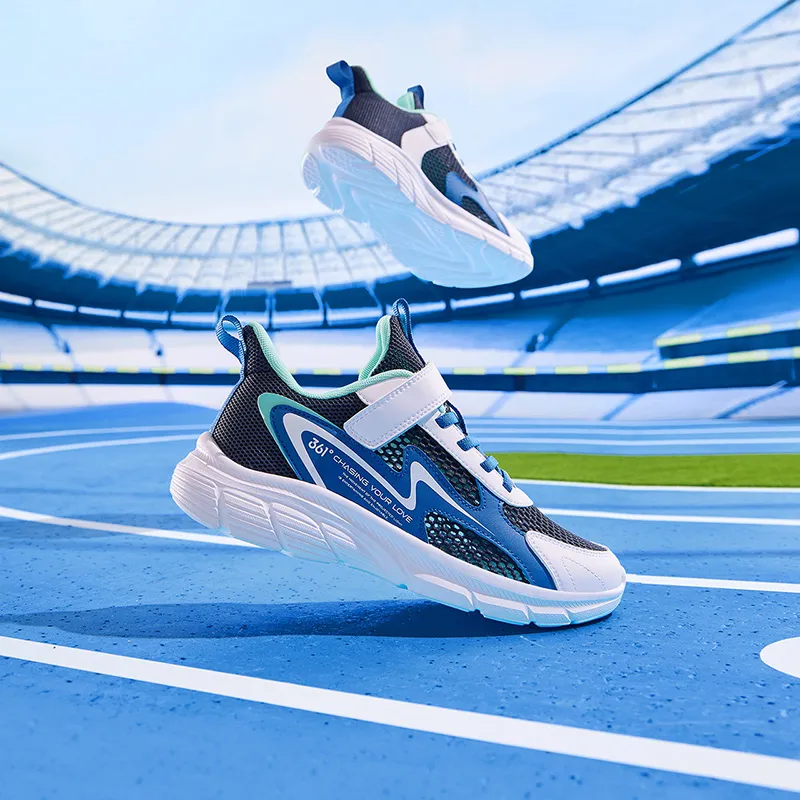361°KIDS Противоскользящие Износостойкие Дышащие Низкие Кроссовки для Беговых Занятий для Детей Синие Белые Малыш