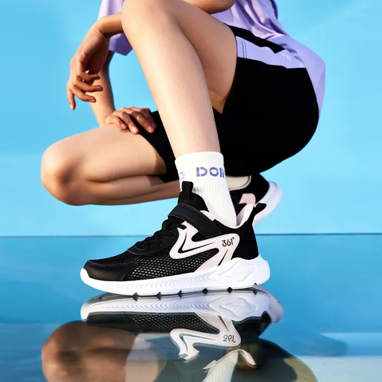 361°KIDS Устойчивый к истиранию Дышащий Противоскользящий Низкий Топ Детская Беговая Обувь Черный Розовый