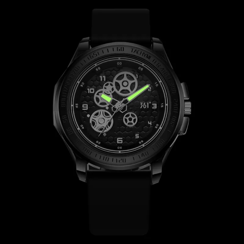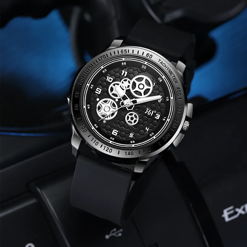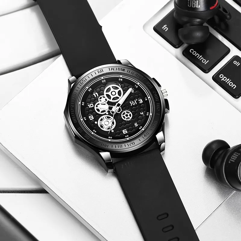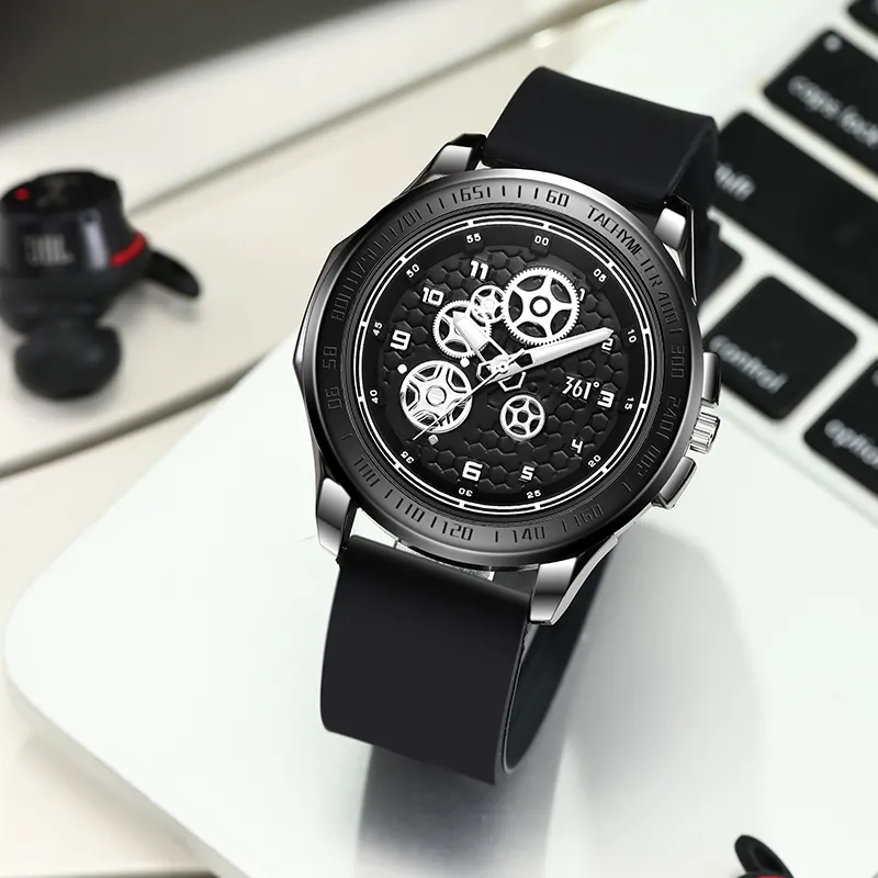 361° Кварцевый механизм силиконовый ремешок мужские часы черный циферблат