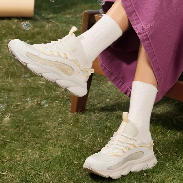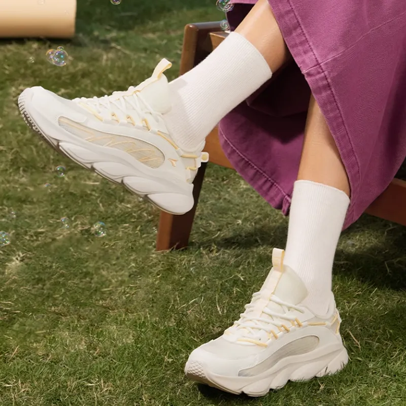 361° Slip Устойчивый к истиранию Дышащий Низкий Топ Беговые кроссовки Женские Белый Желтый