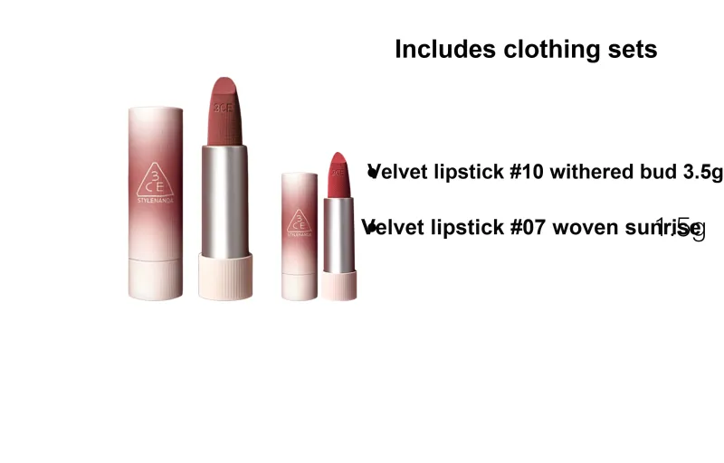 Оттенок:Двухкомпонентный комплект: Бархатный губная помада #10 Сухая Цветочная почка 3,5 г + Бархатная губная помада #07 Вязаная ткань Рассвет 1,5 г