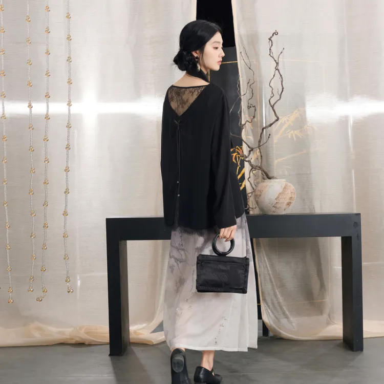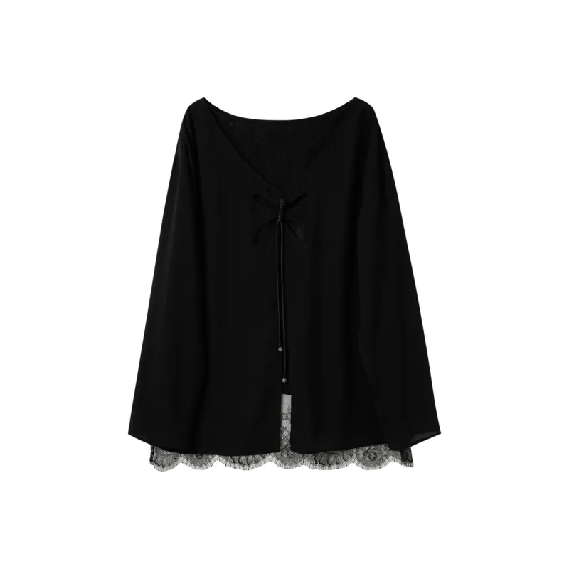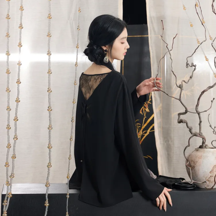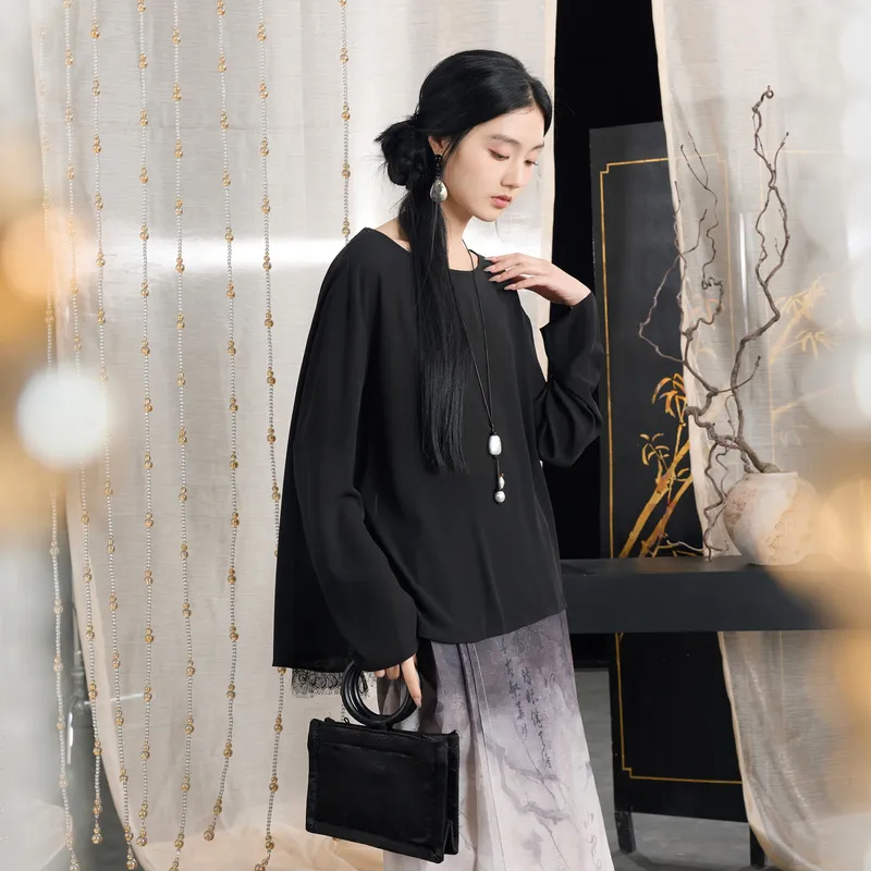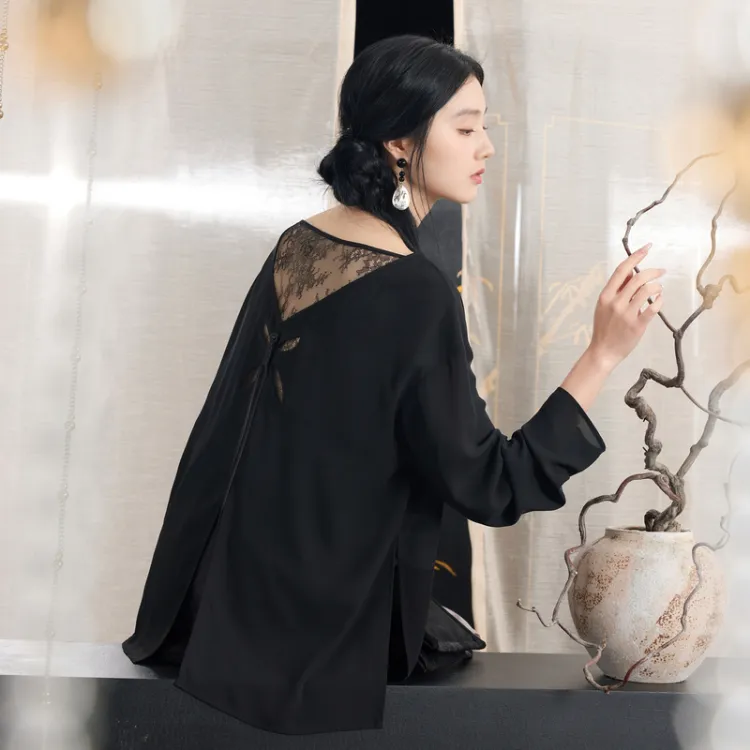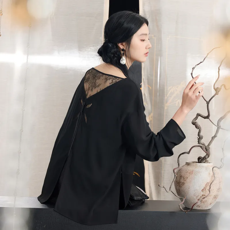 3COLOUR Классический черный женские шифоновые рубашки