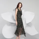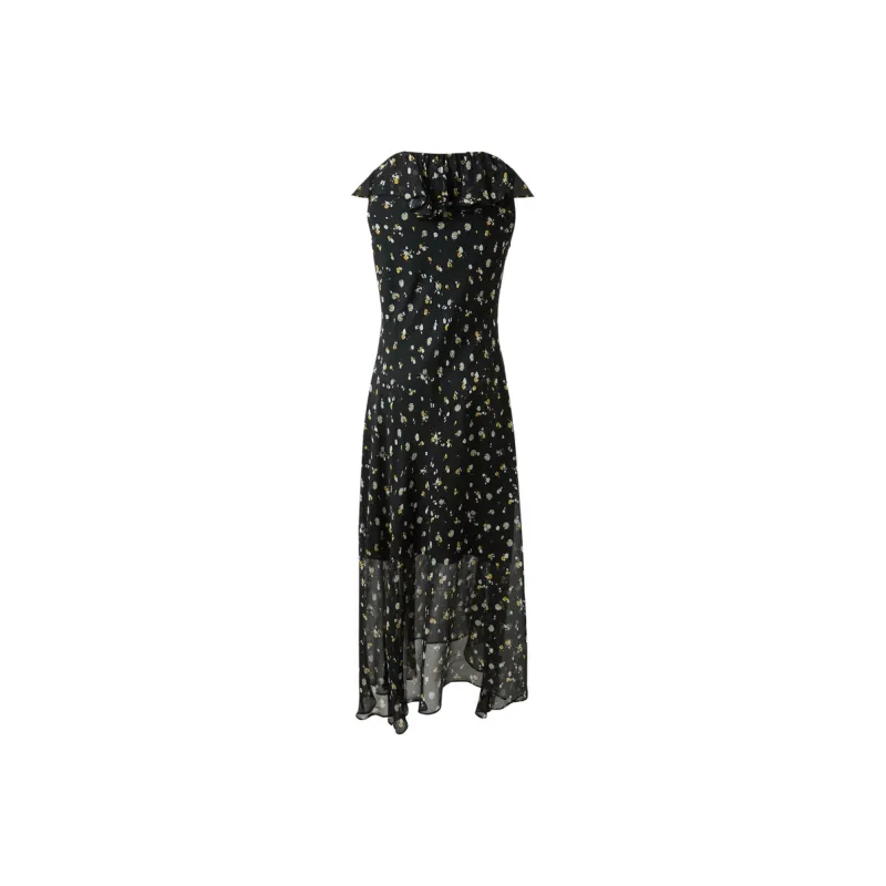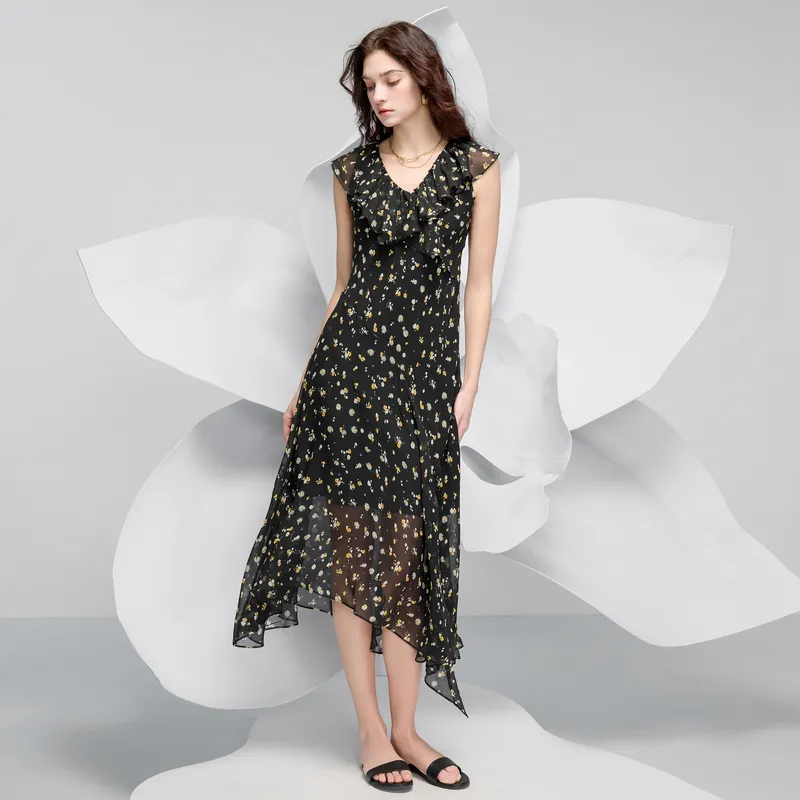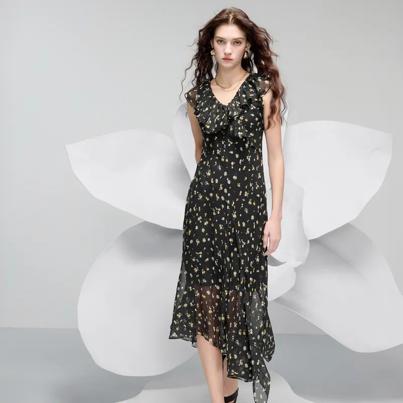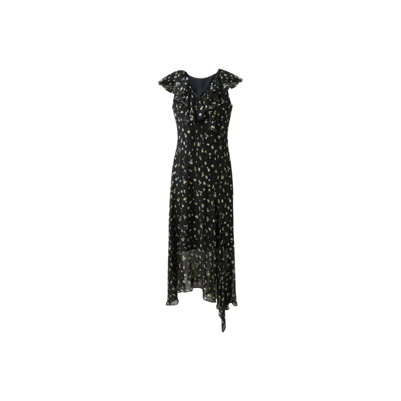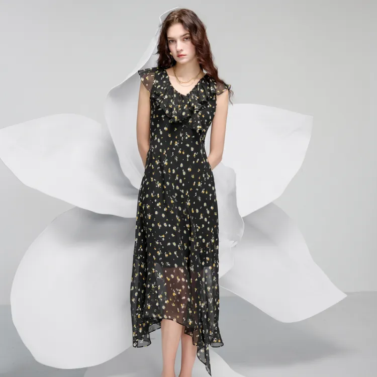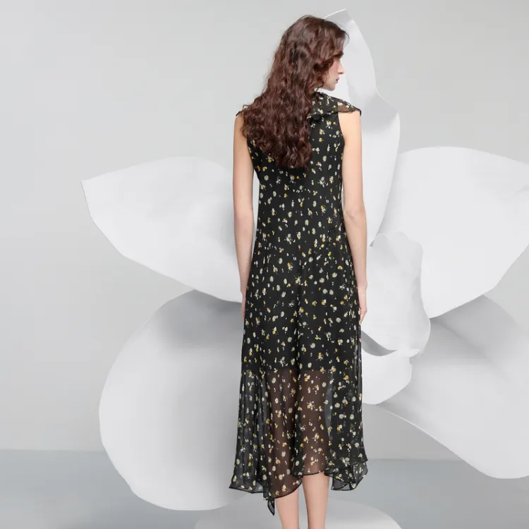 3COLOUR Короткий рукав платье женское цвет ворон узор цветочный