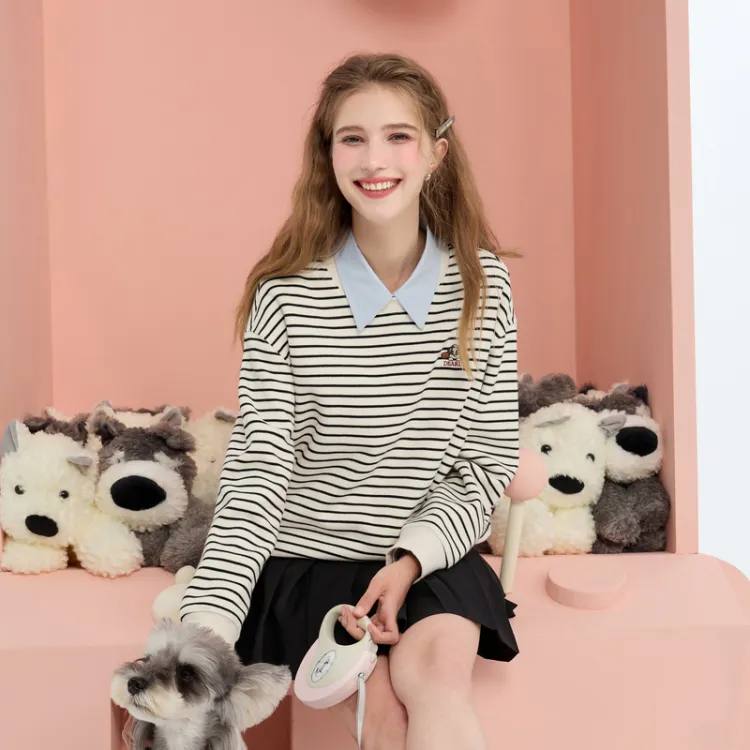 3COLOUR Свитшот Женский Черный Белый Полосы