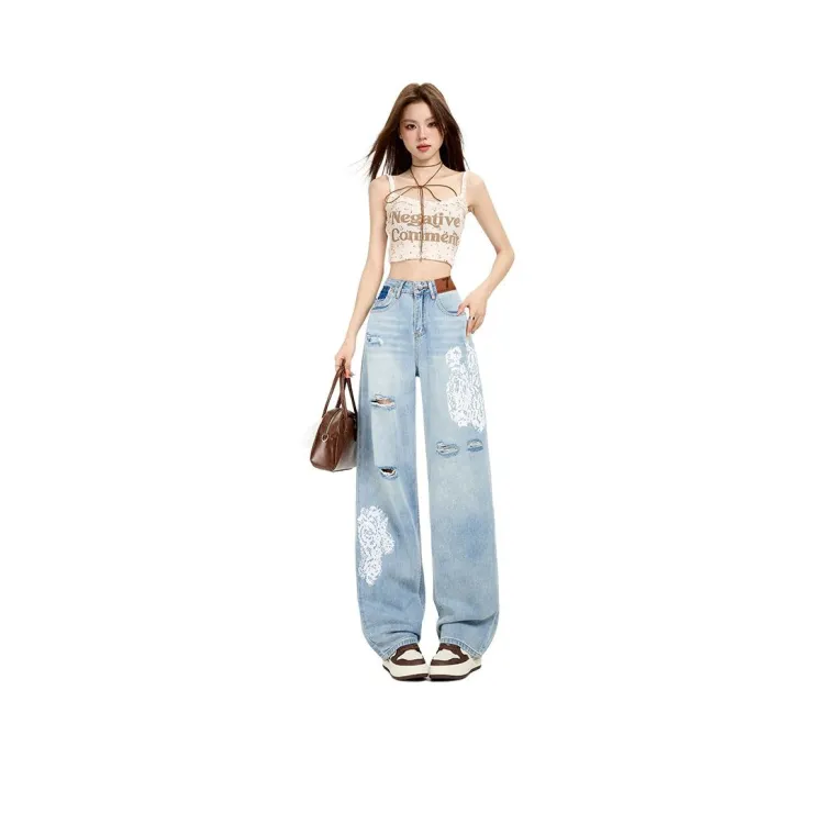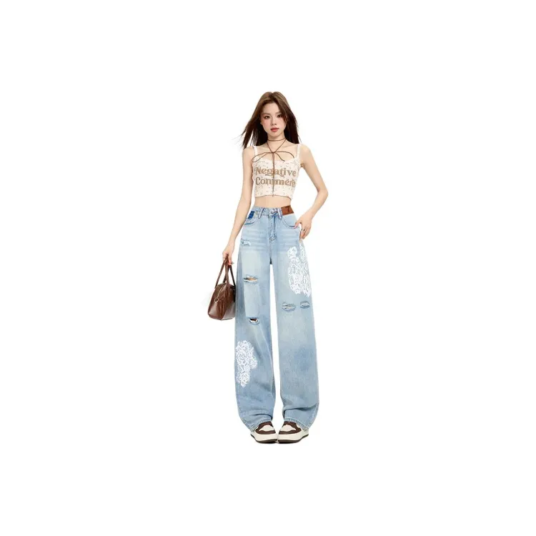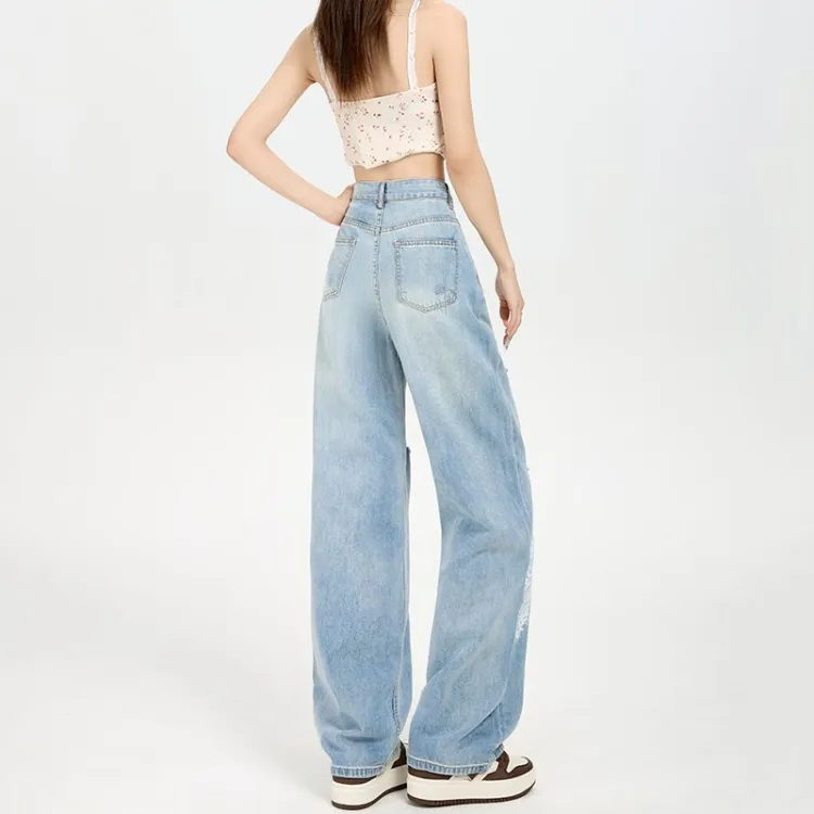 Светло-синие рваные штаны