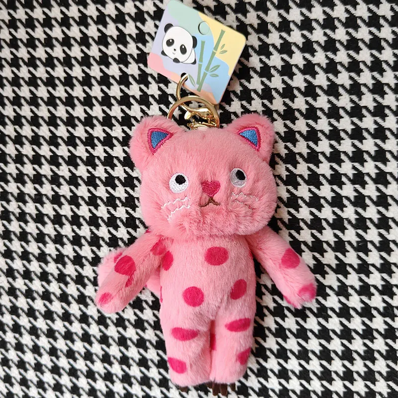 77 SEVEN DREAM Cute Polka Dot Kitten Backpack Charm Plush Doll Pendant Height 16 см