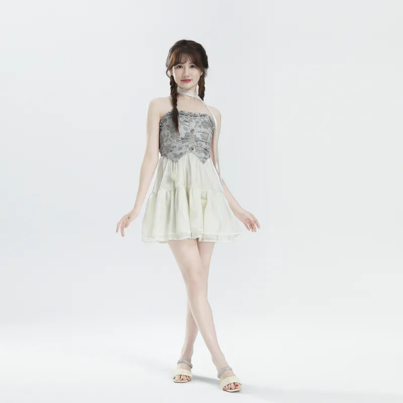 9 Кошка Лакомства Палочки Без рукавов Платье Женские Сливочный