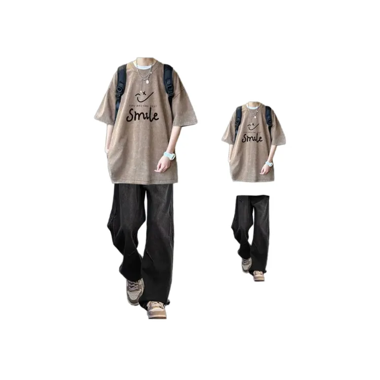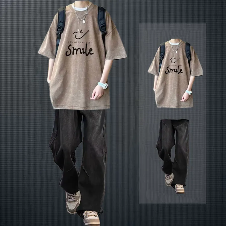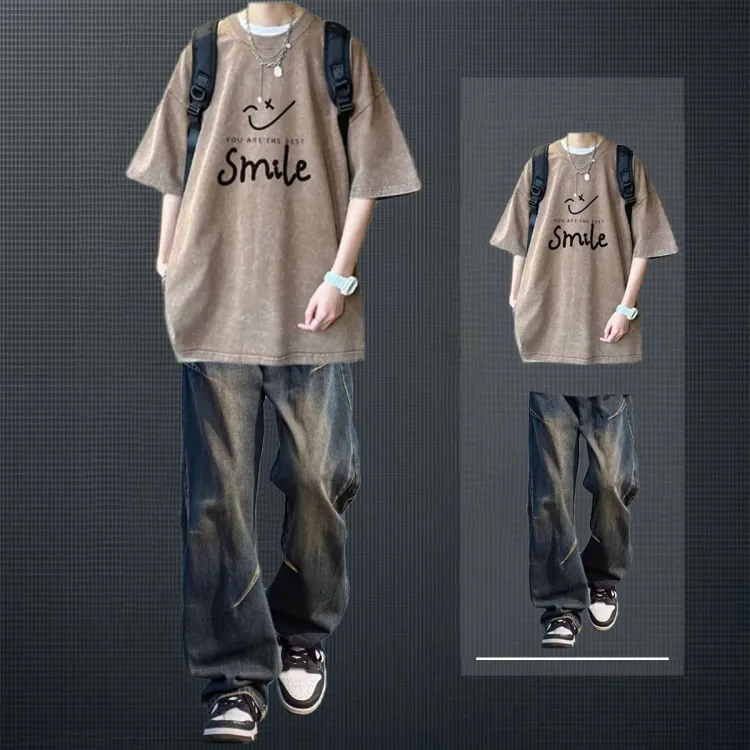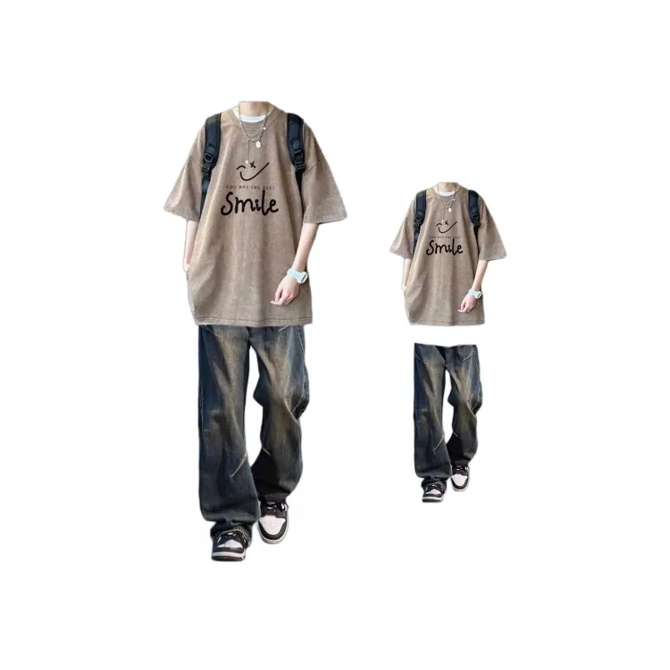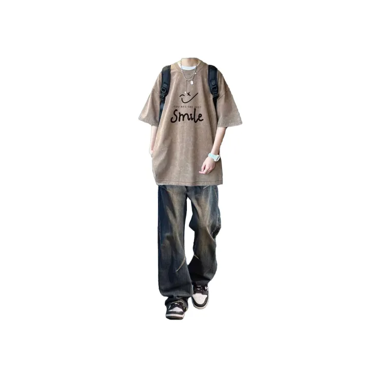 Кофейный Футболка + Темно-синие Джинсы [Улучшенный]
