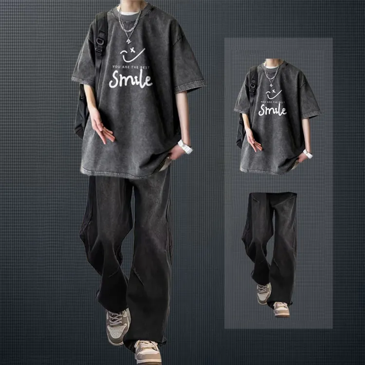 Черная серая футболка + черные джинсовые штаны [улучшенный]