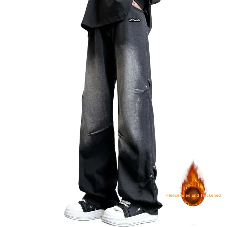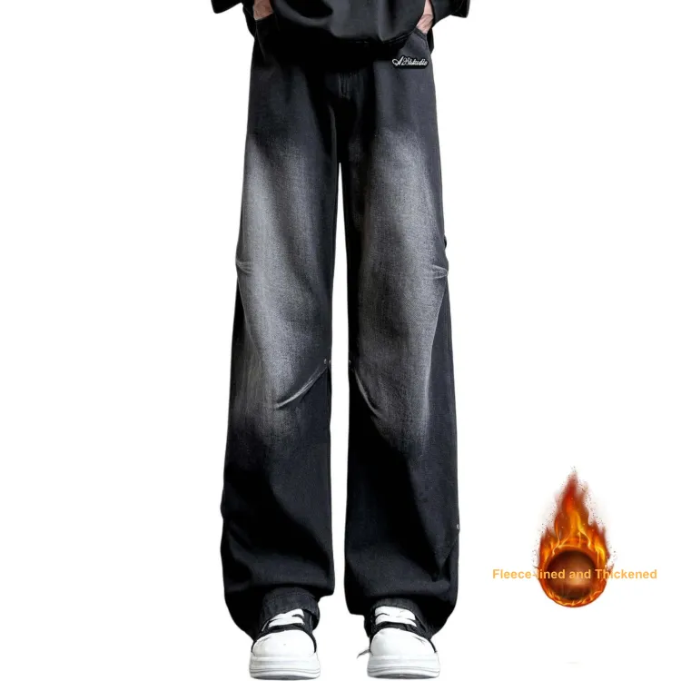 Чёрный Серый Джинсы [Утолщённый и с Флисовой Подкладкой]