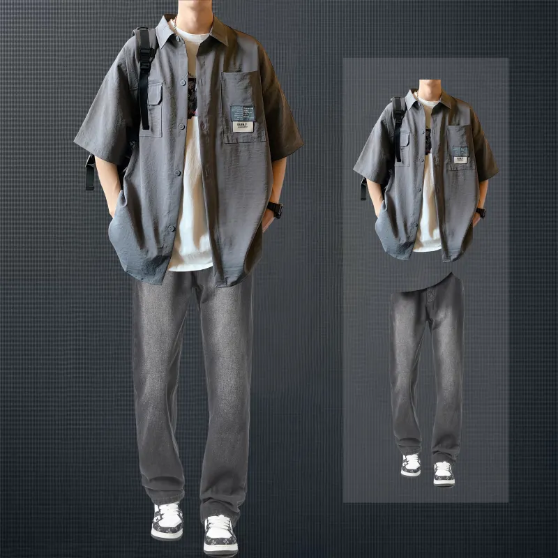 Комплект:Дымчатый серый, рубашка + серые джинсы
