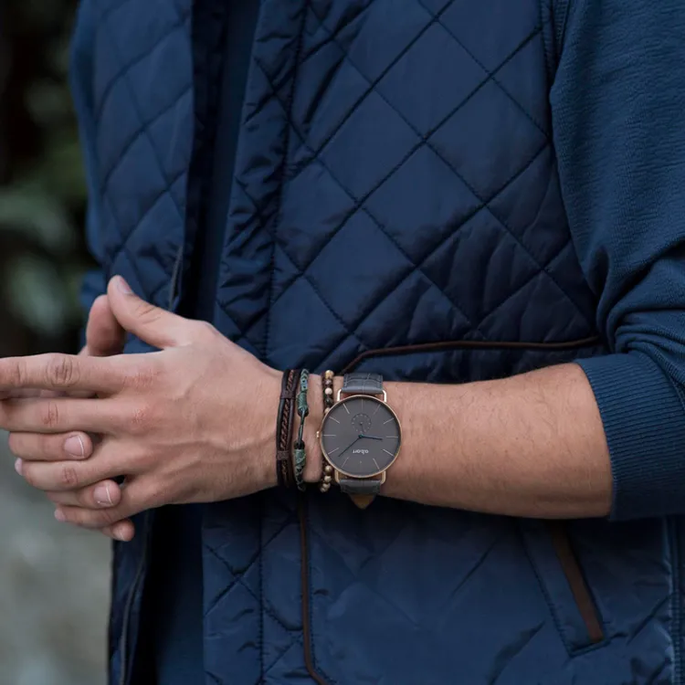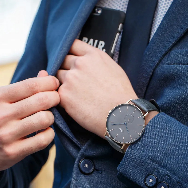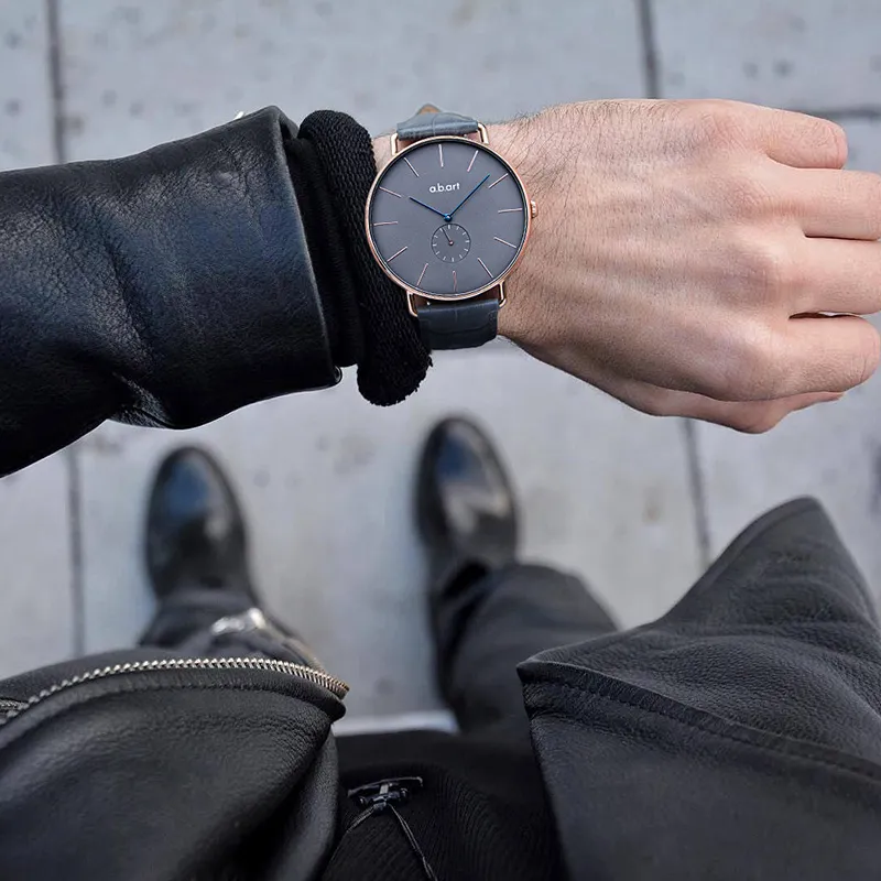 a.b.art Men's Watches Кварцевый механизм Естественная кожа Ремешок Черный циферблат Часы FR41 003 3L