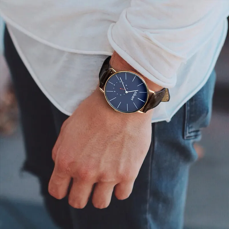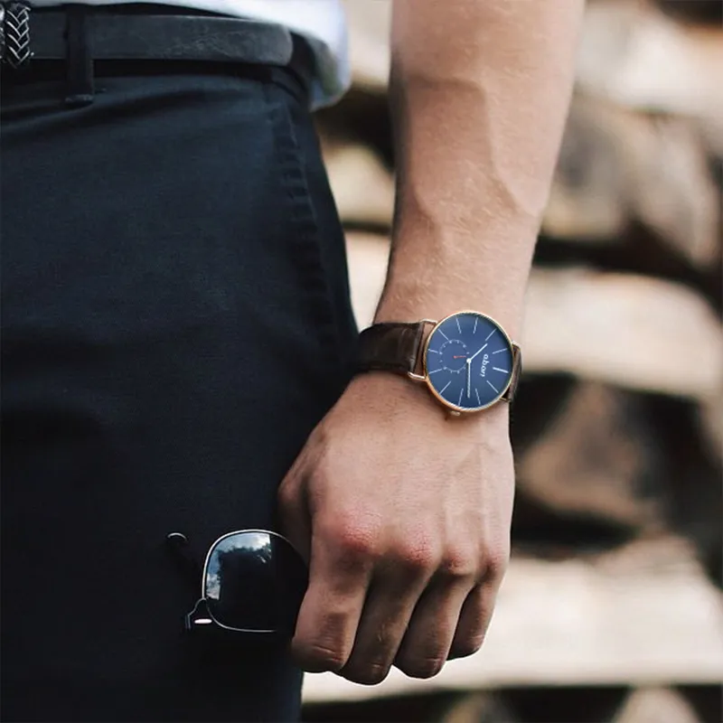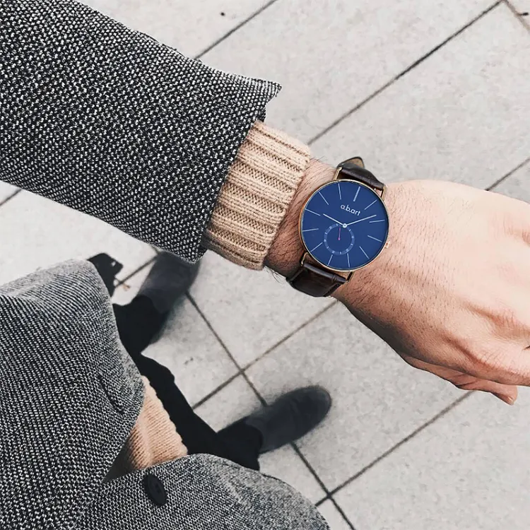 a.b.art Мужские часы Кварцевый механизм Естественная кожа Ремешок Синий циферблат Часы FR41 014 4L