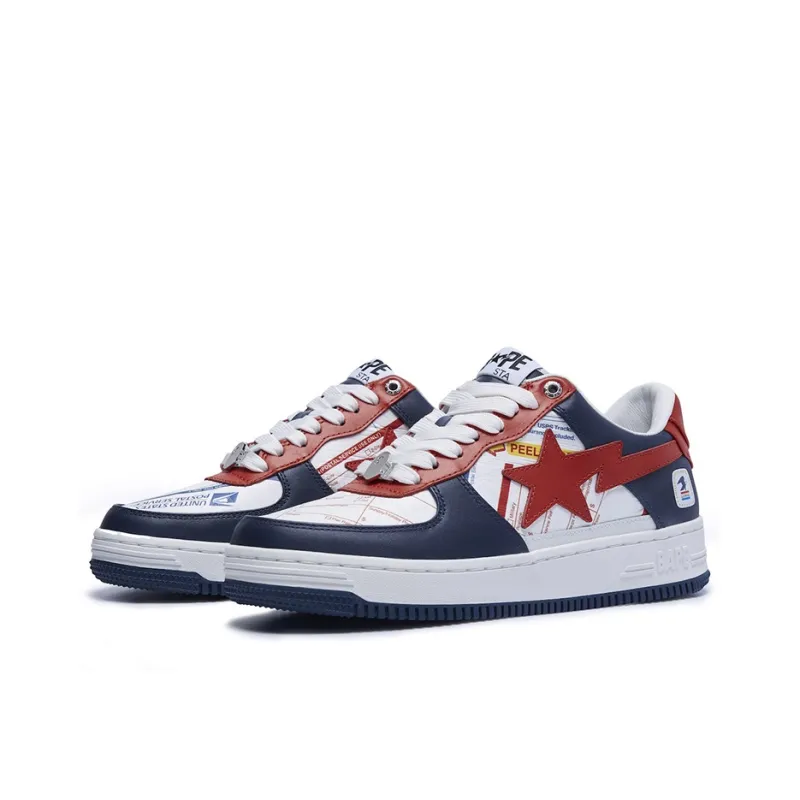 USPS x A BATHING APE STA 'Priority Mail Express Label' Низкий Топ Стильные Скейтбординги Мужской Белый Синий Красный