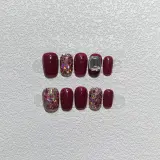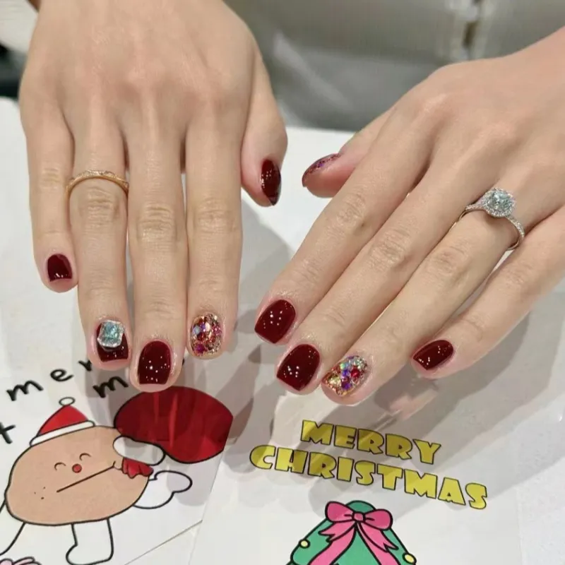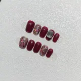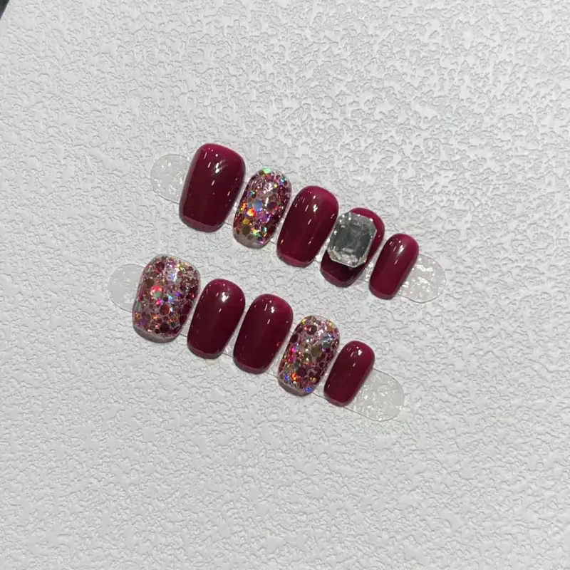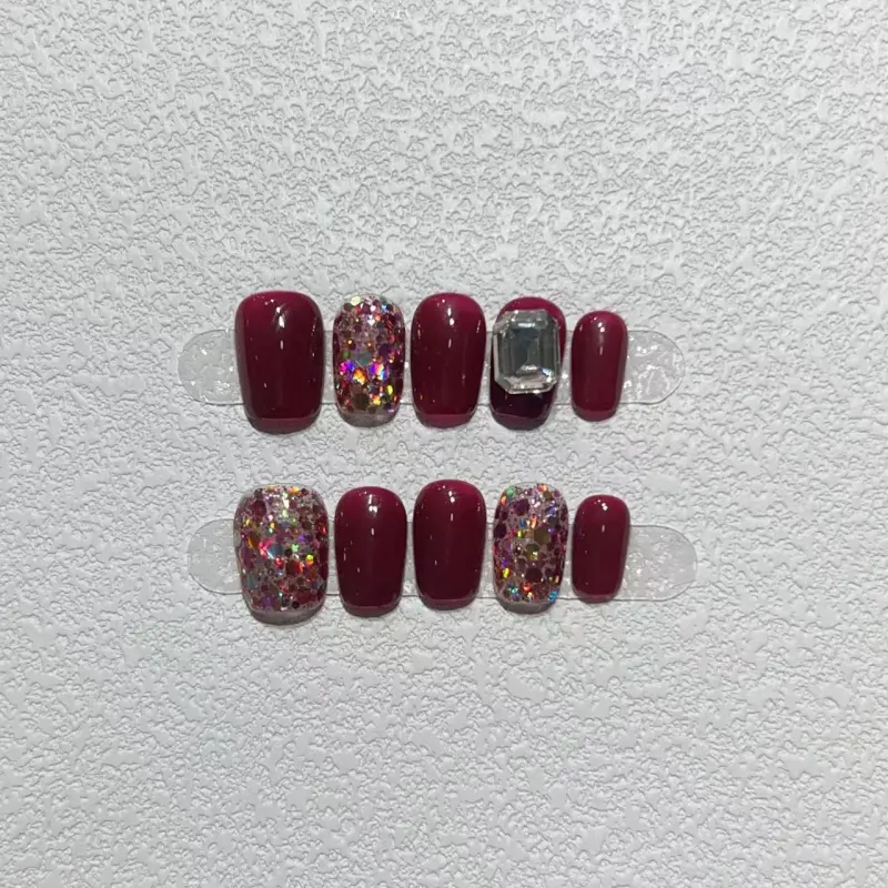 A Few More Cute Блестки Квадрат Бриллианты Handcrafted False Nail Короткий LADDER Красный Однотонный Блестки