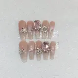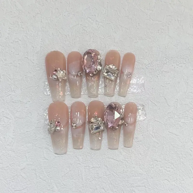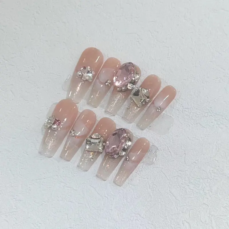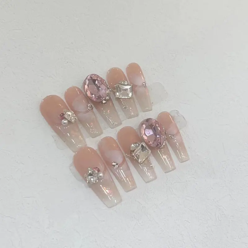 A Few More Cute Мягкий Sweetheart Прозрачный Сверкающий Страз False Nail Трапециоидальный Длинный Розовый Однотонный Coquette