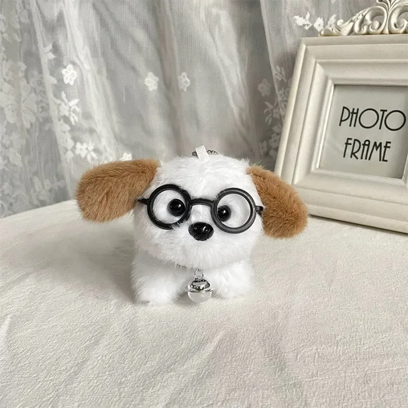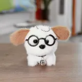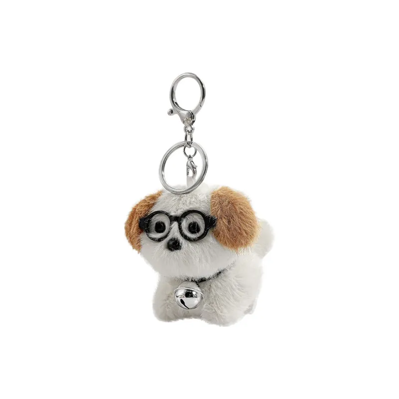 Колокольчик, стекло, щенок, плюшевый, подвеска - белый, коричневый