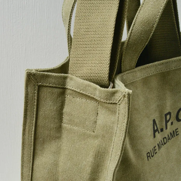 A.P.C Холст Тоут Сумка Сумка для покупок Переносная Холщовая Сумка Сумка через плечо Унисекс Зеленая