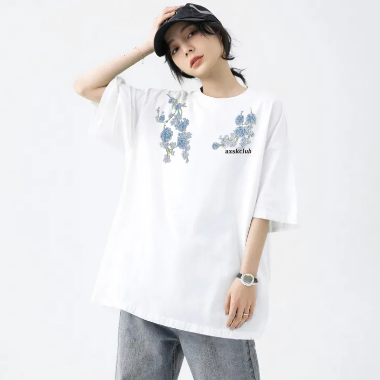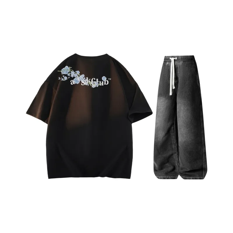 Комплект одежды (Белый топ [320 г, тяжелый] + Винтажные синие штаны)