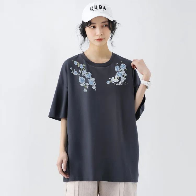 Комплект одежды (Топ в темно-сером цвете + Штаны в винтажном синем цвете)