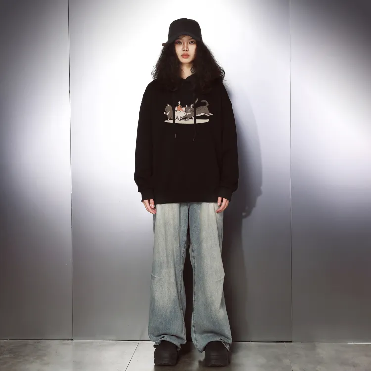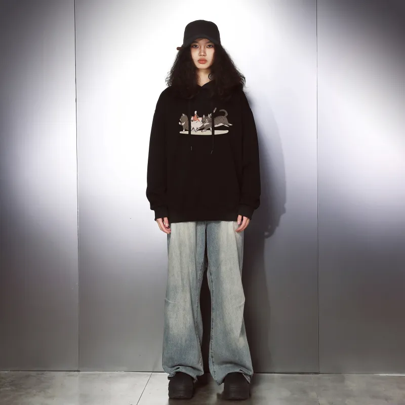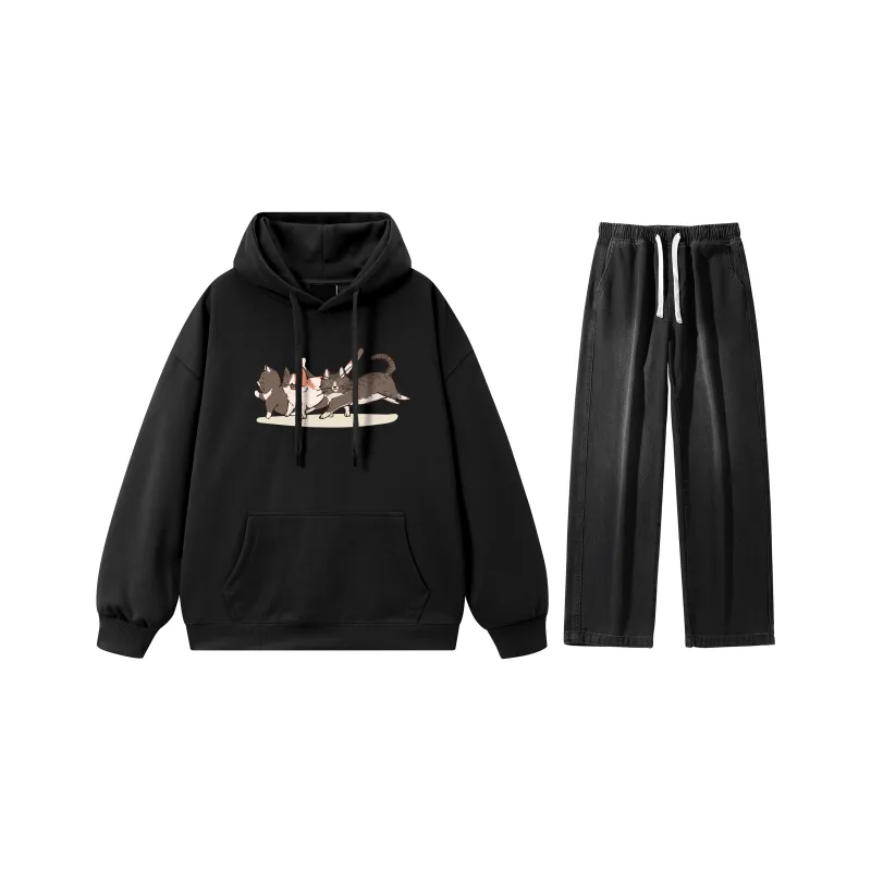 Комплект:Комплект одежды (Черный свитшот + Черные джинсы)