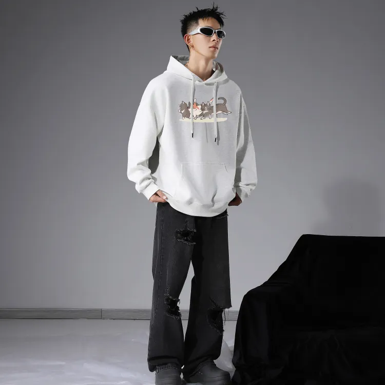 Комплект одежды (Белый свитшот + Черные джинсы)