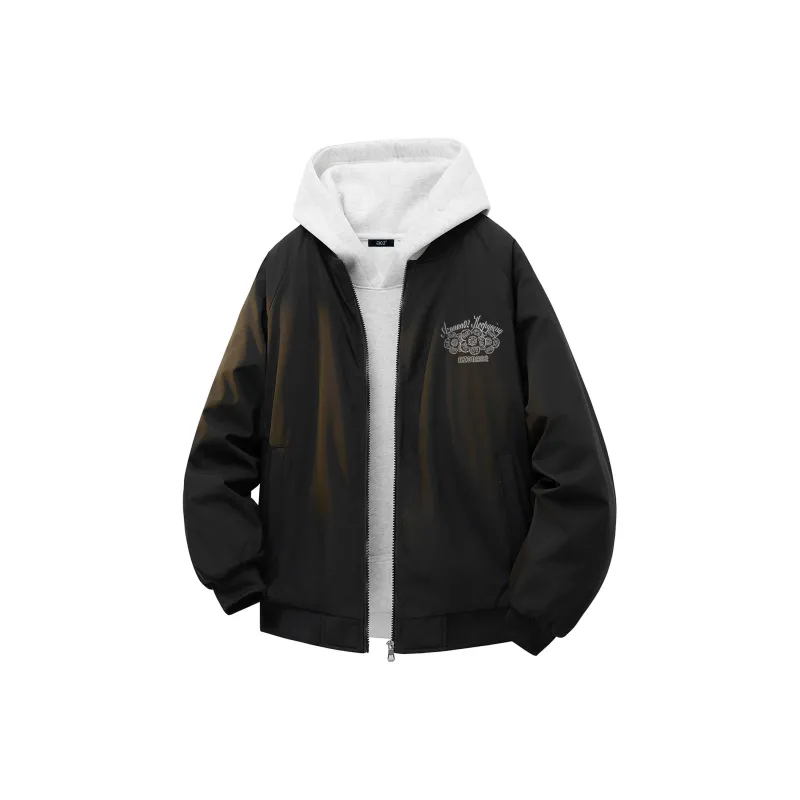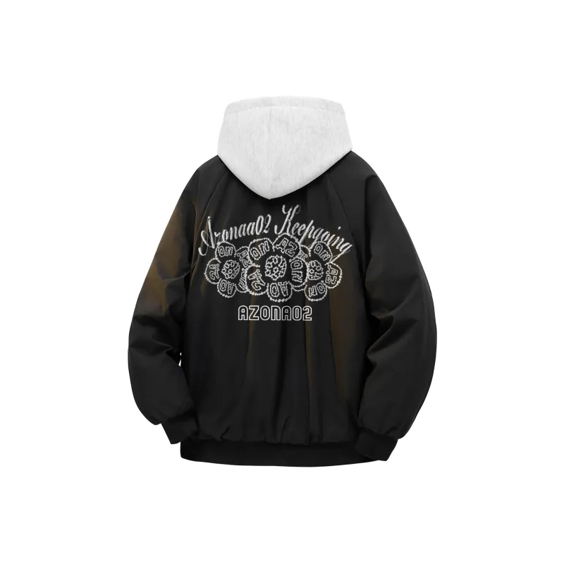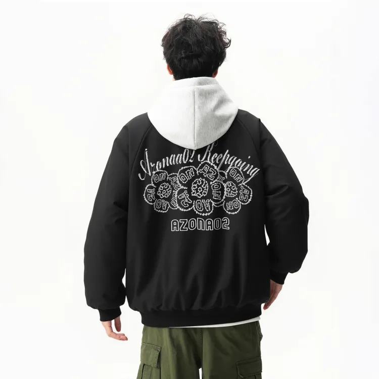Черный хлопковый пуховик (в комплекте с высококачественным бело-серым свитшотом с фотанией)