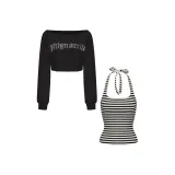 Свитшот: 85% хлопок, 15% полиэстер Топ на бретелях: 70% хлопок, 25% вискоза, 5% эластан