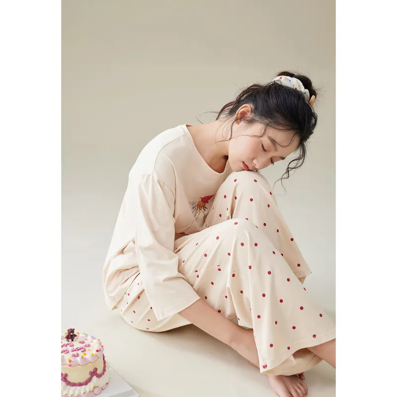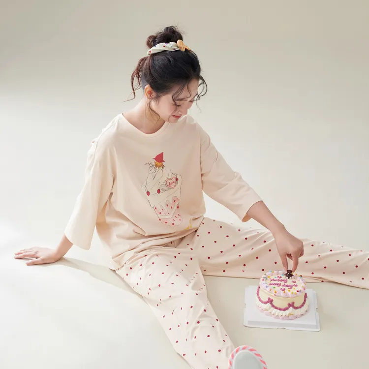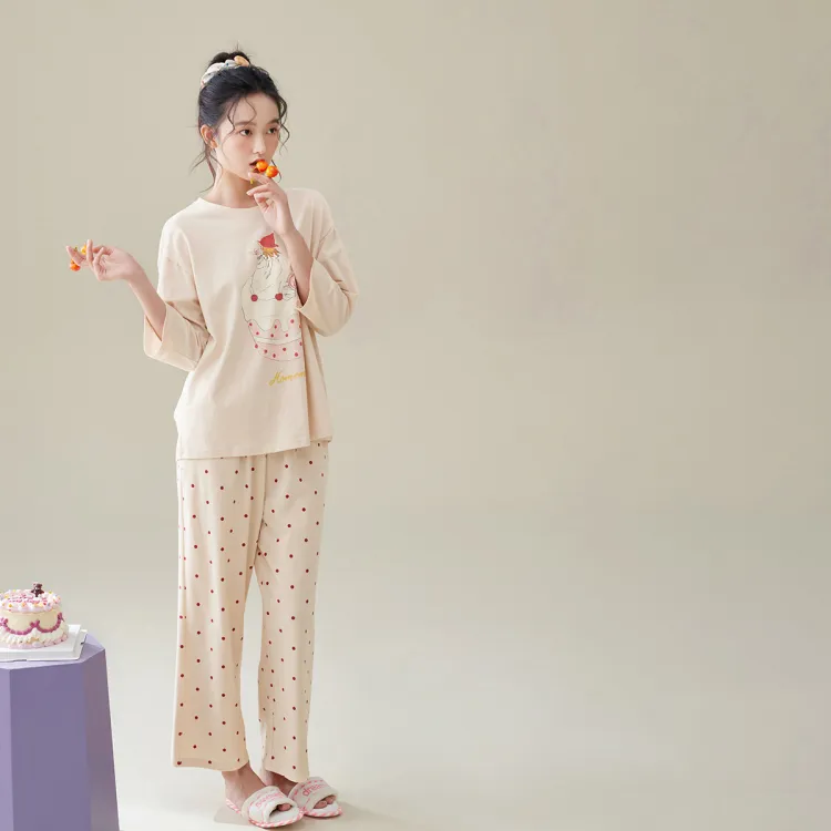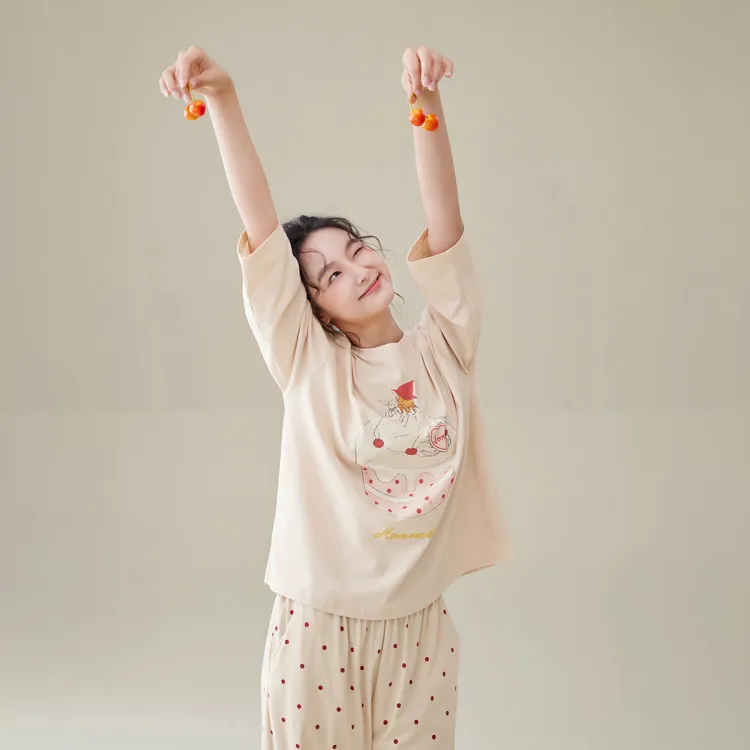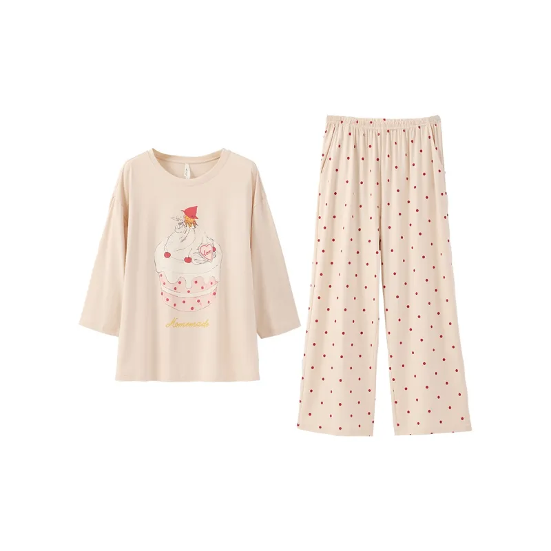 Aannsfam Pajama Комплект Женский Абрикосовый Серый