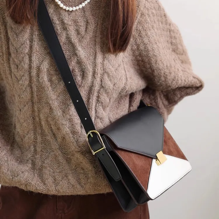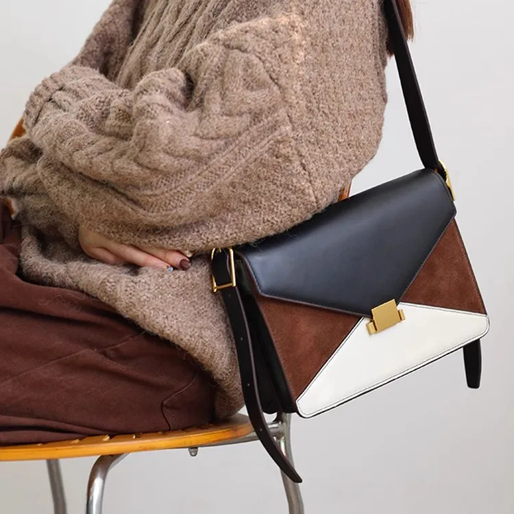 Abbott Винтаж Коровья кожа Конверт Сумка Сумка через плечо Сумка на плечо Женская Белая и Коричневая Бордовая и Черная
