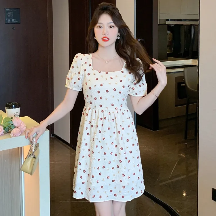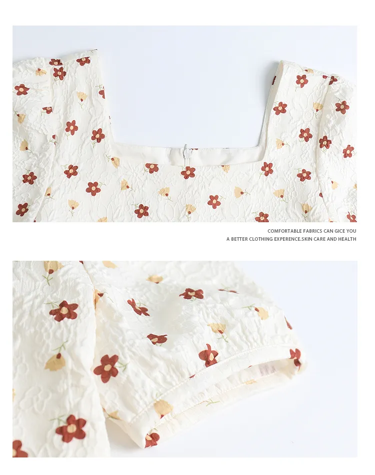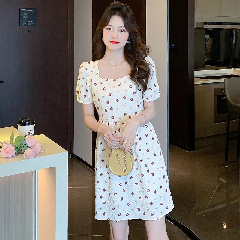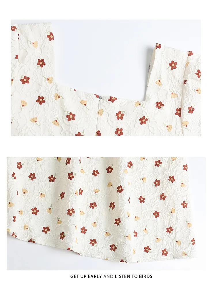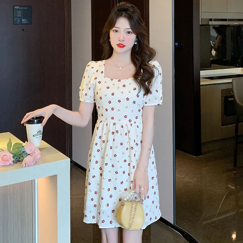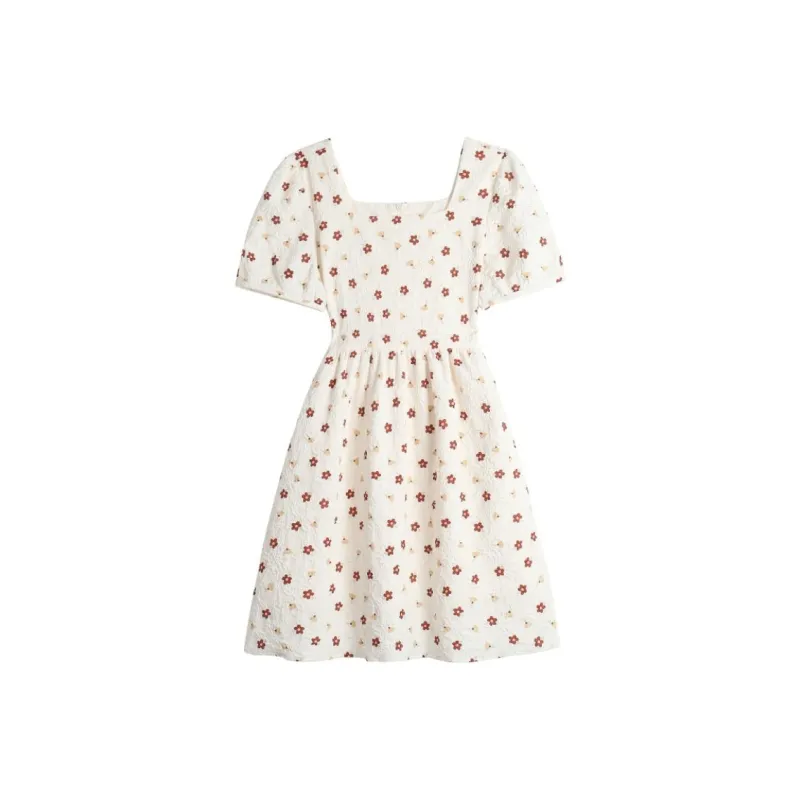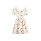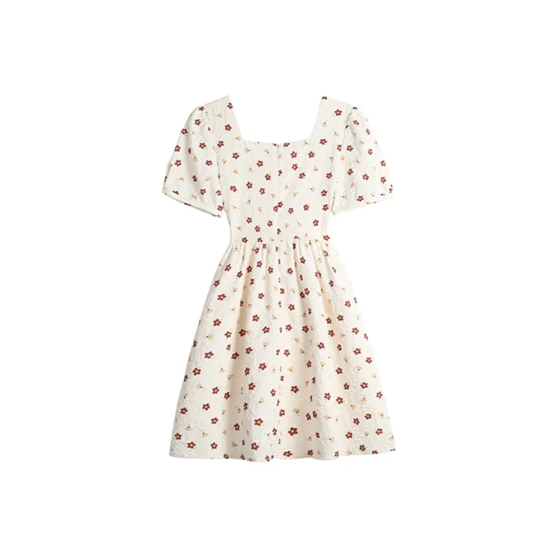ABBY GODDESS Летнее Короткое Платье с Короткими Рукавами Женское Бежевое Цветочное
