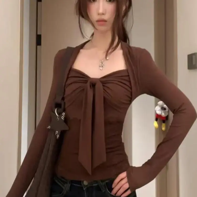 ABBY GODDESS Кофейный Топ Женские T-рубашки