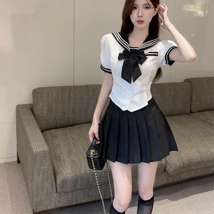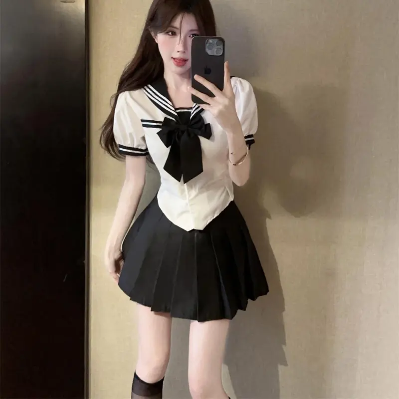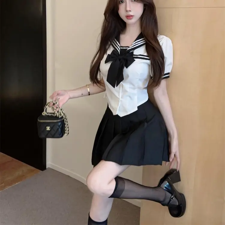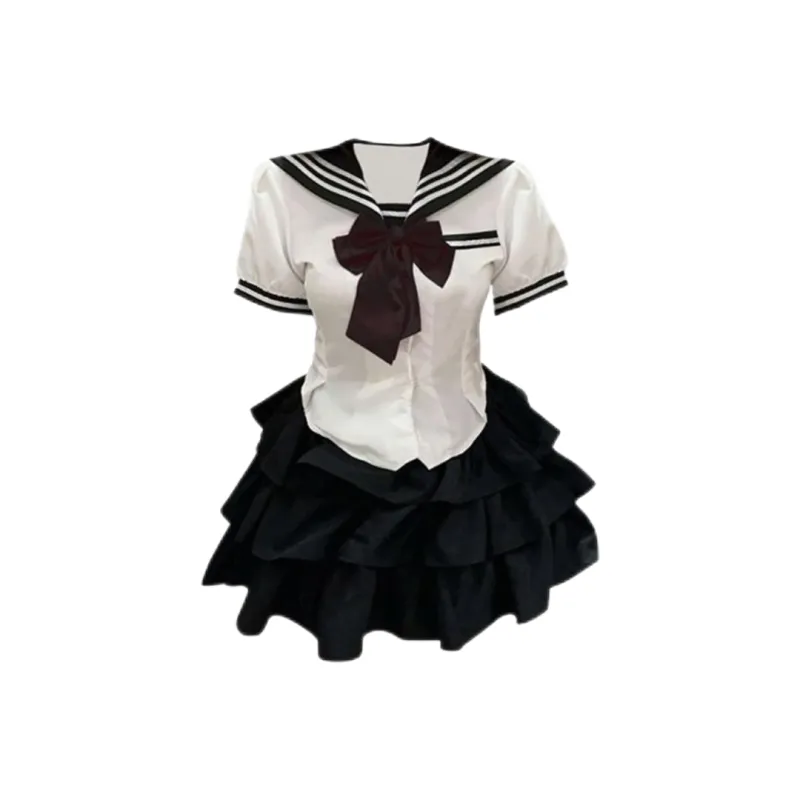 Комплект:Белая рубашка + черная юбка с оборками