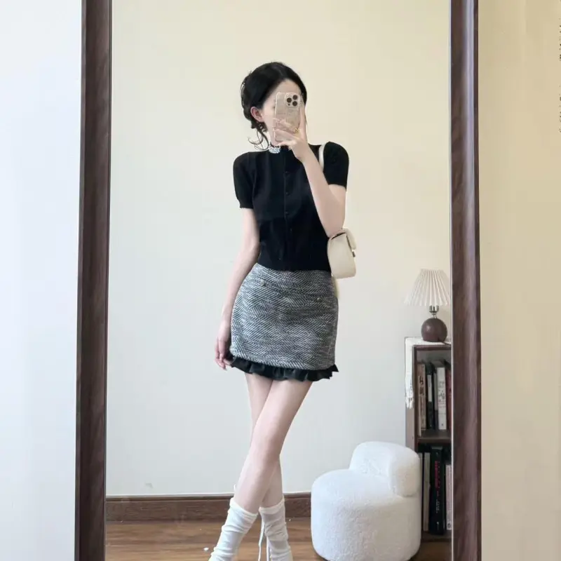 Чёрный топ + юбка, комплект