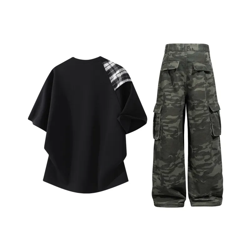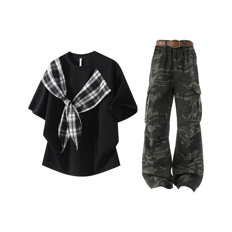 Комплект:Чёрный топ + камуфляжные штаны