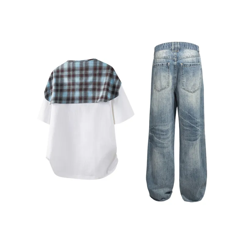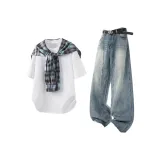 Комплект:Белый топ + синие штаны