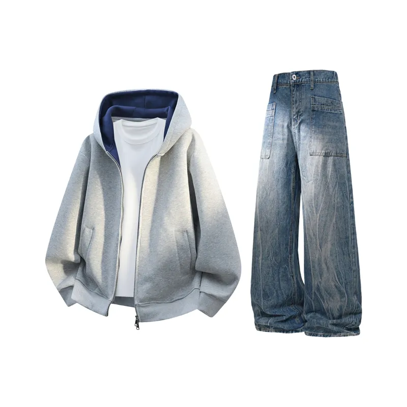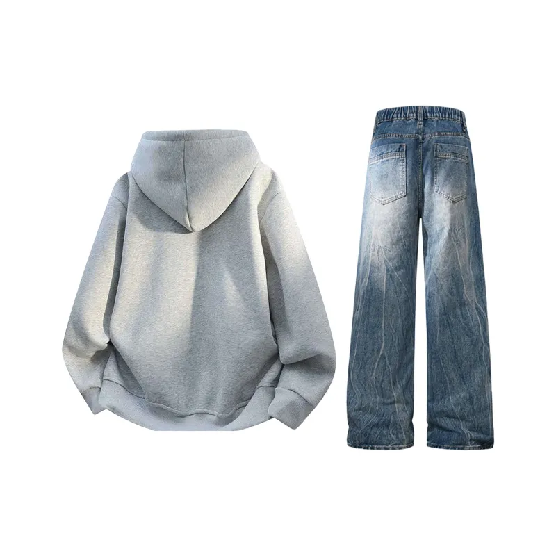 Комплект:Фотиния Серый Топ + Синие Джинсы