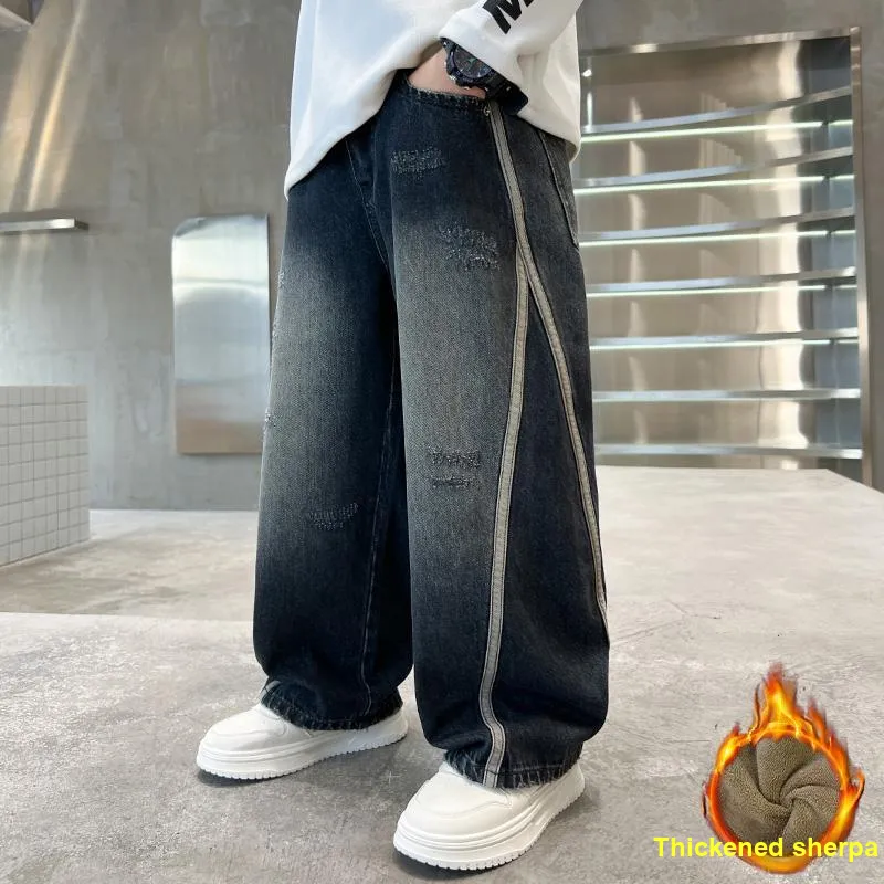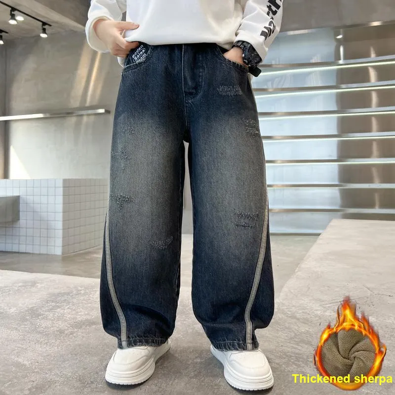 ABDT Синий Серый С флисовой подкладкой Джинсы для детей