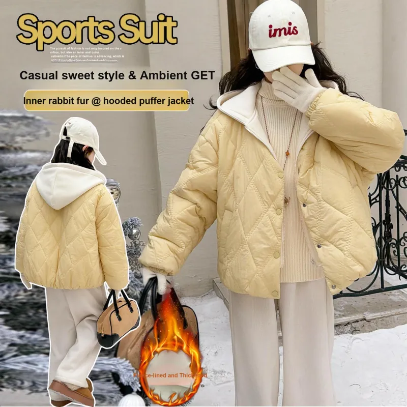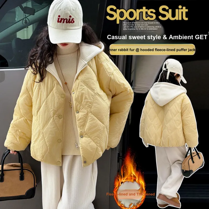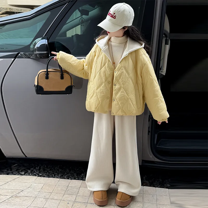 Цвет:Желтый хлопковый пуховик с эффектом двухслойности