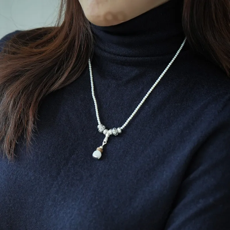 Стиль:925 стерлинговое серебро, натуральный жемчуг + хетянский белый нефрит, ожерелье - Цанхай Шицзю (Цанхай жемчужный)