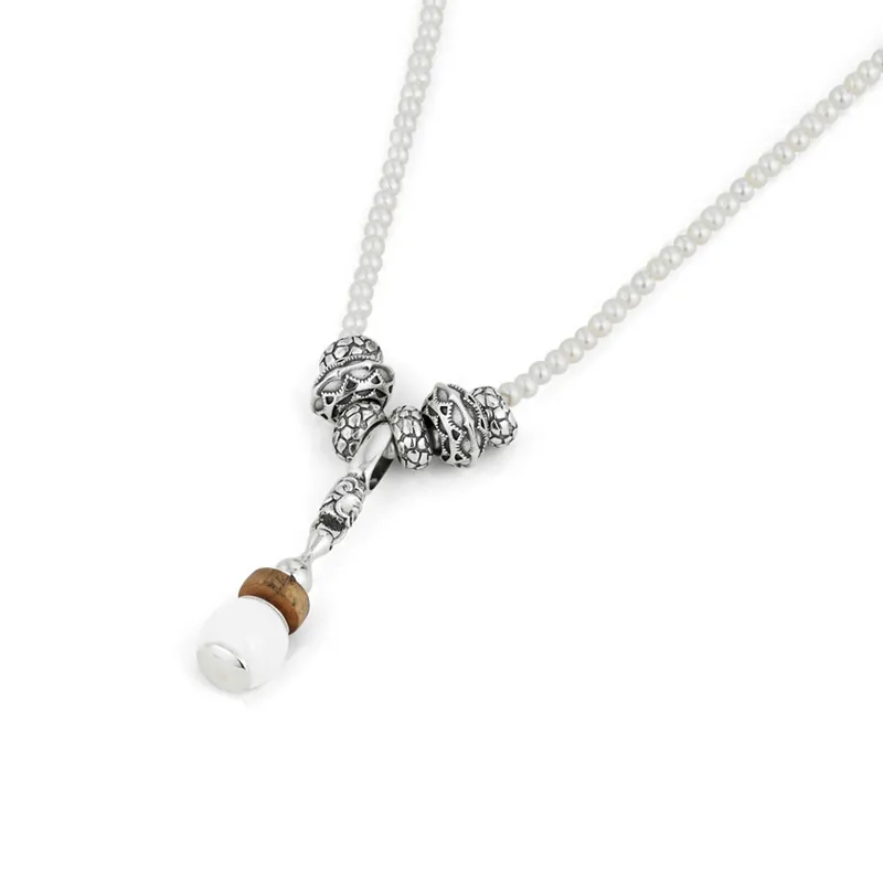 925 стерлинговое серебро, натуральный жемчуг + хетянский белый нефрит, ожерелье - Цанхай Шицзю (Цанхай жемчужный)