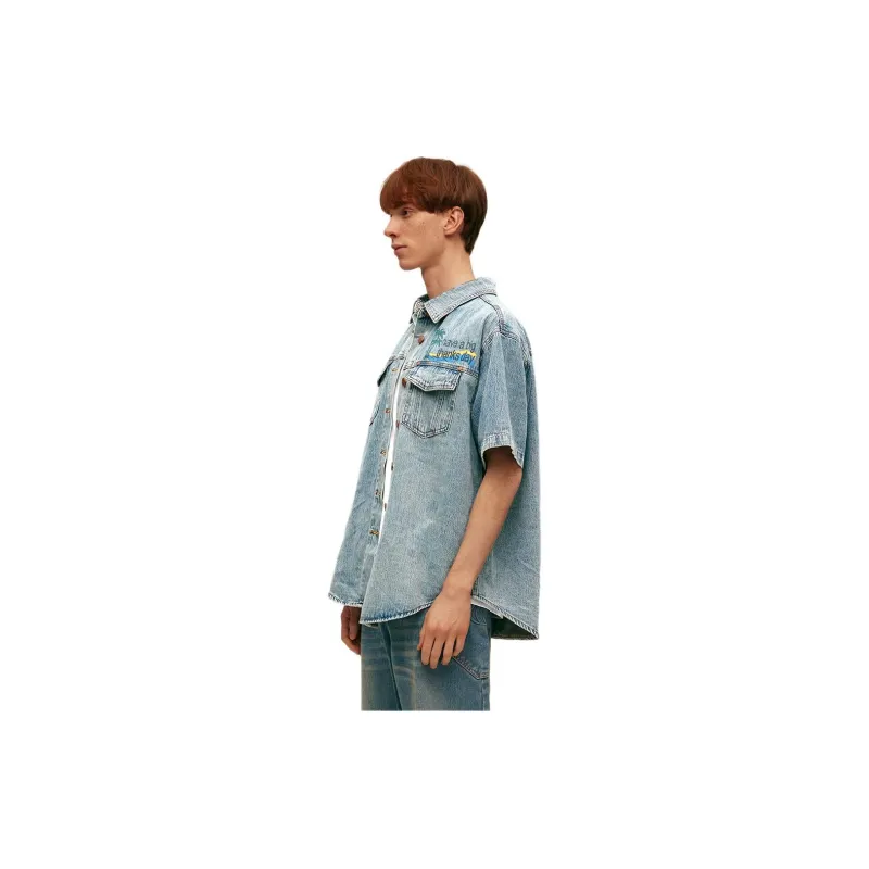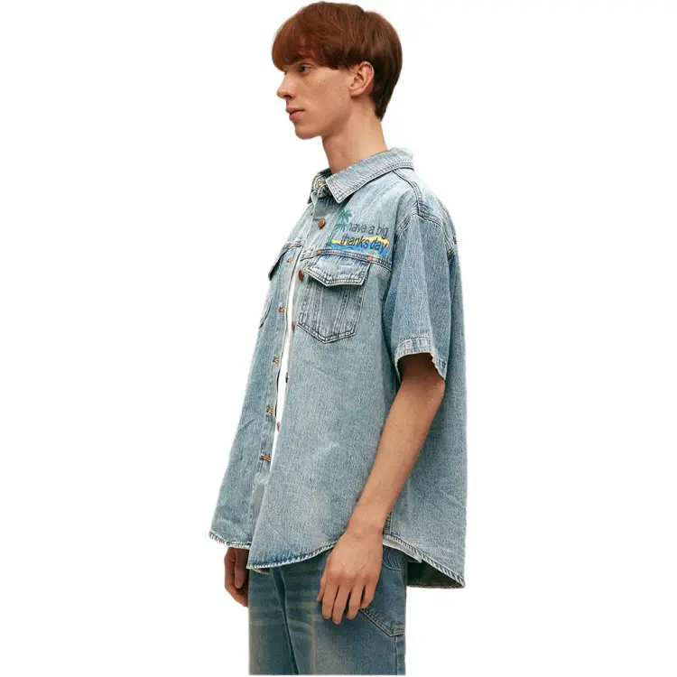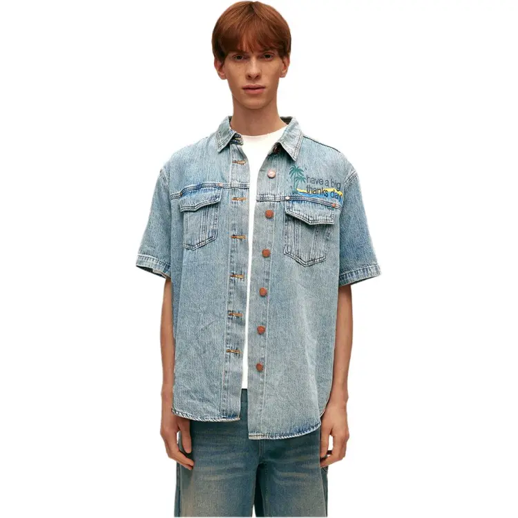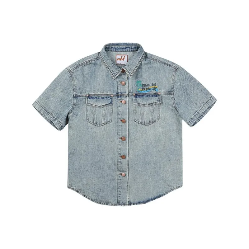 ABT Винтажная синяя унисекс рубашка