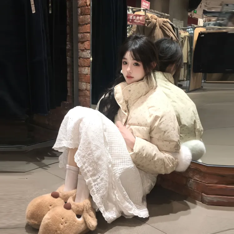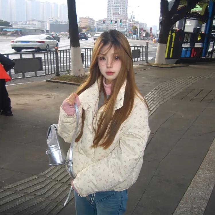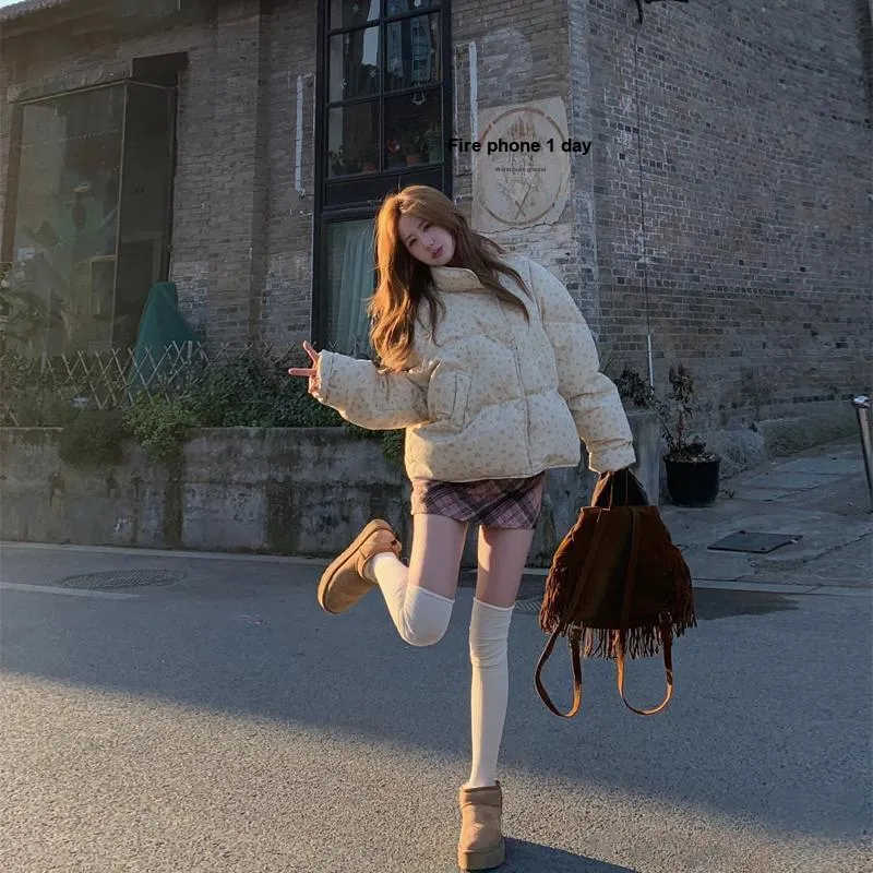 ACAINES Розовый Цветочный Женский Пуховик