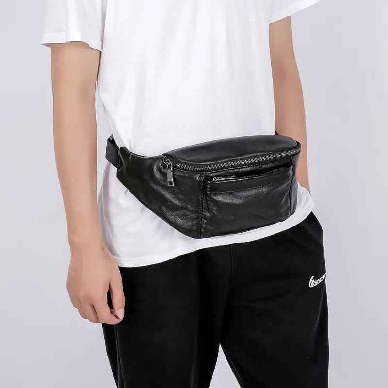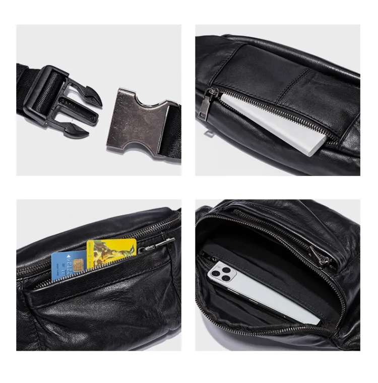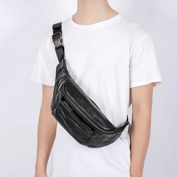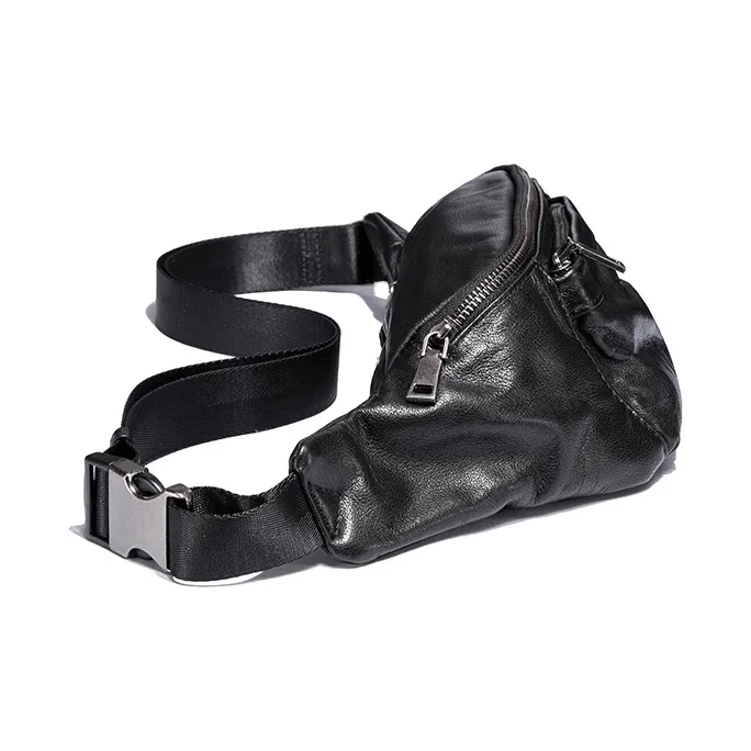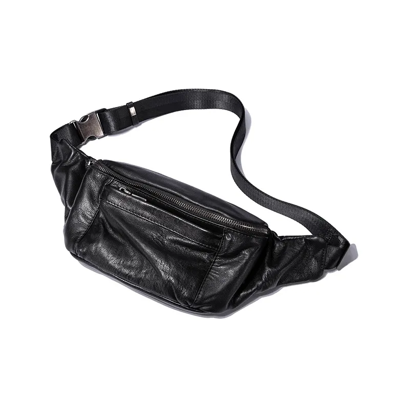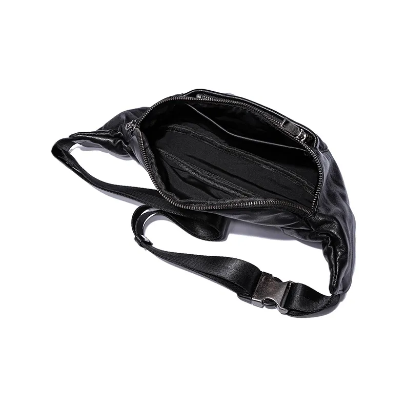 Ace Paul Натуральная кожа Сумка через плечо из крупнозернистой текстуры коровьей кожи Банан Сумка через плечо Средний Унисекс Черный