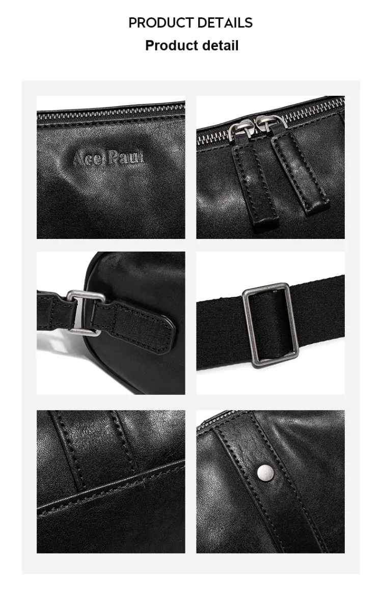 Ace Paul Растительное дубление Коровья кожа Бостонская сумка Сумки через плечо Сумка на плечо Унисекс Черный