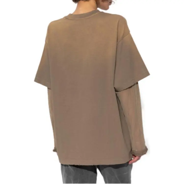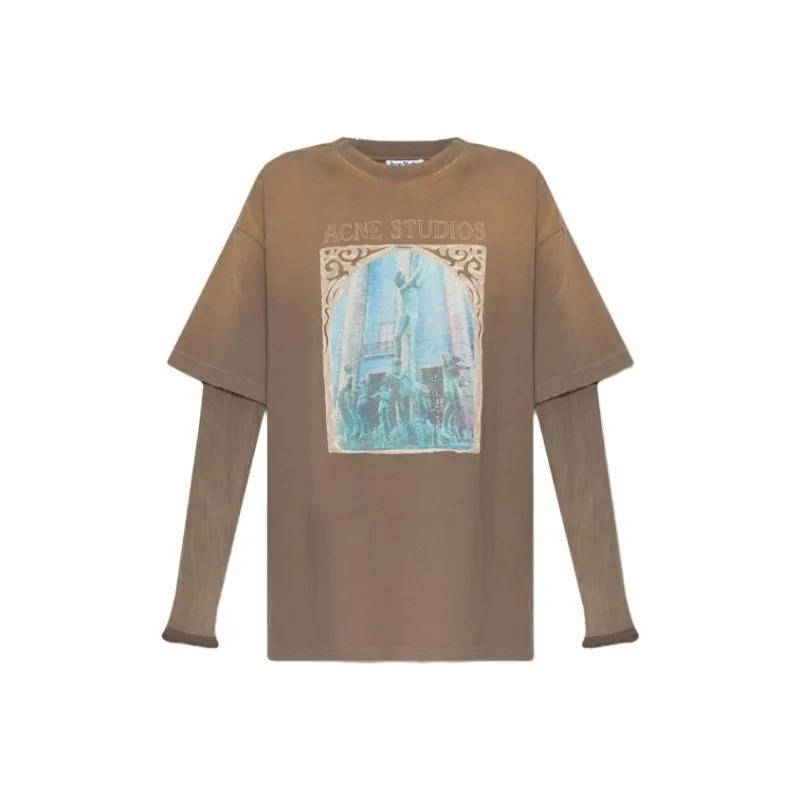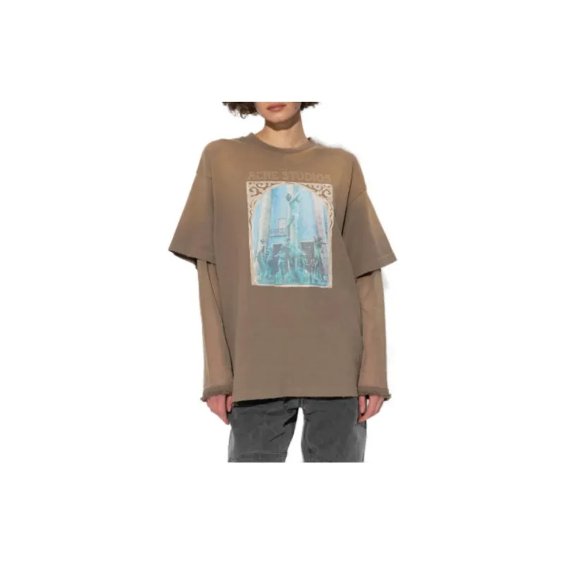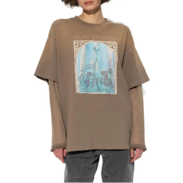 Acne Studios Т-рубашка с оборванным рукавом женская коричневая