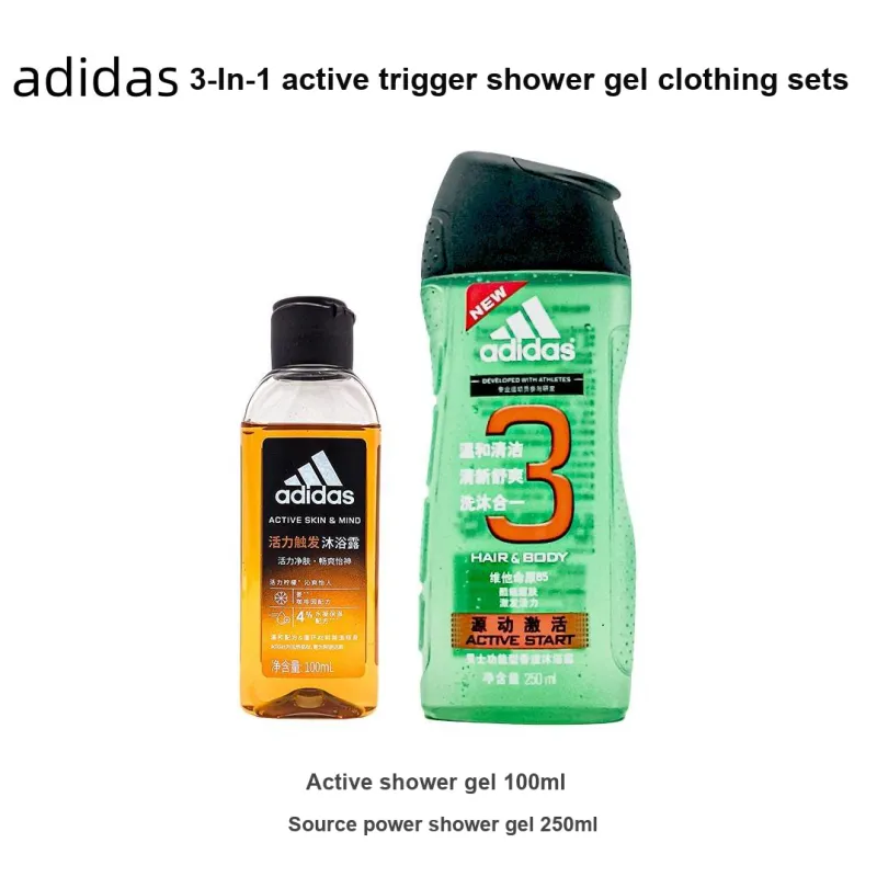 Adidas 3 в 1 Активный Trigger Shower Гель Набор Очищающий Восстанавливающий и Увлажняющий 100 мл + 250 мл