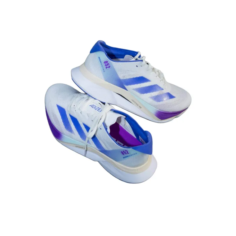 Adidas Adizero Boston 12 Амортизация Устойчивость к истиранию Дышащие Низкие Беговые кроссовки Унисекс Белый Синий